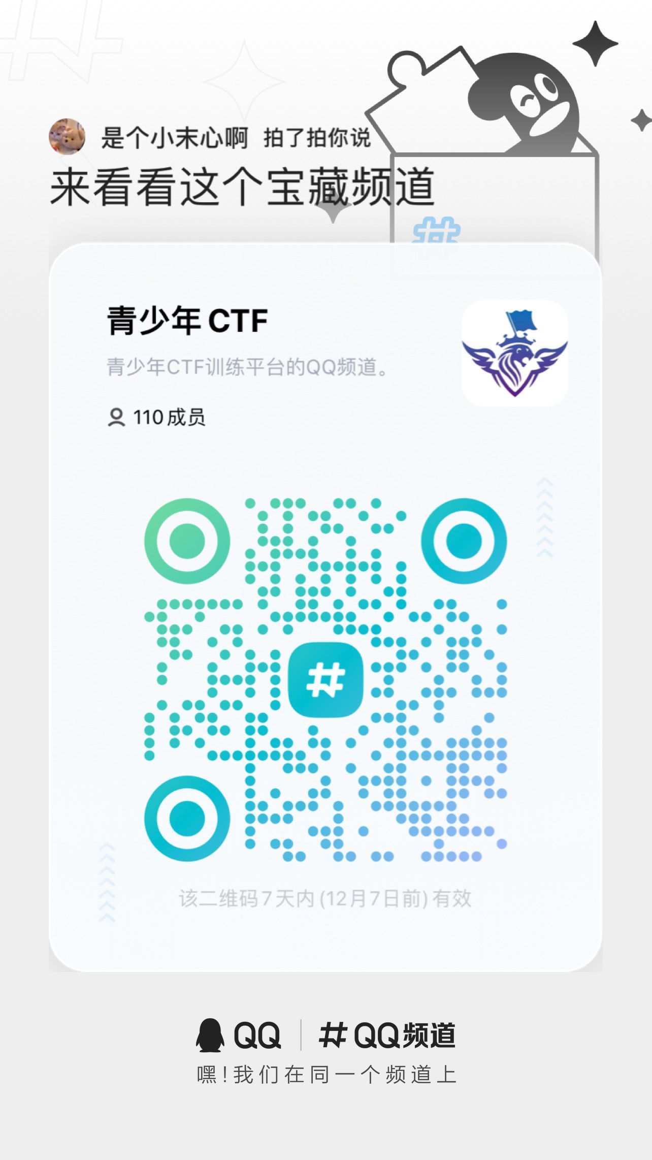 如果您想要向「青少年CTF」投稿视频,可以添加运营QQ「1044631097」发送视频文件。