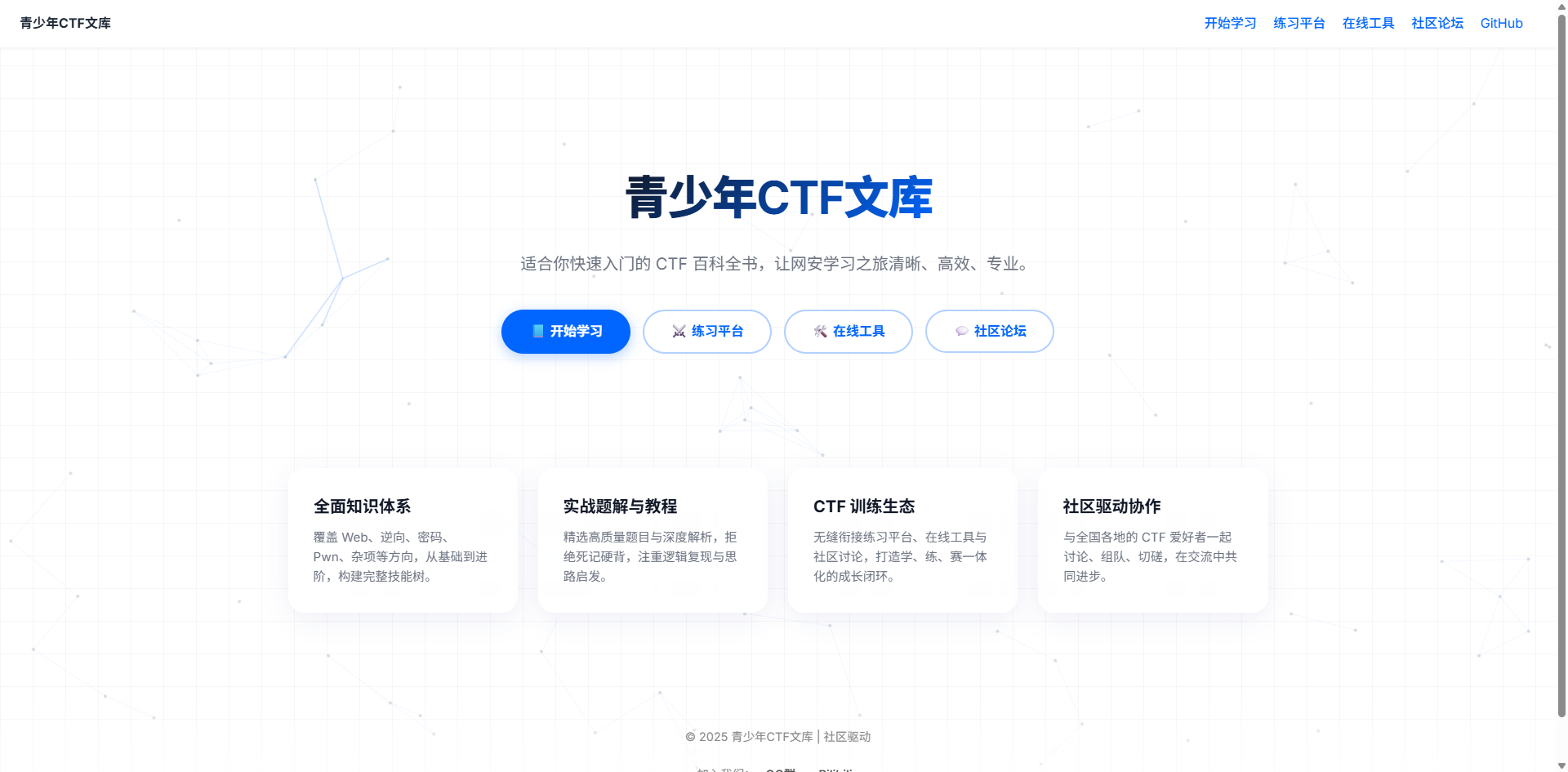 当然经过2018年到现在,很多师傅也随着青少年CTF(中学生CTF)已经到了工作养家的地步了,但是大部分师傅们都还是保留着打CTF的习惯,喜欢CTF的氛围和乐趣,我们也欢迎各位师傅一起共同共建我们的文库,这也是为什么我们底部版权留下了“社区驱动”这样的关键内容。